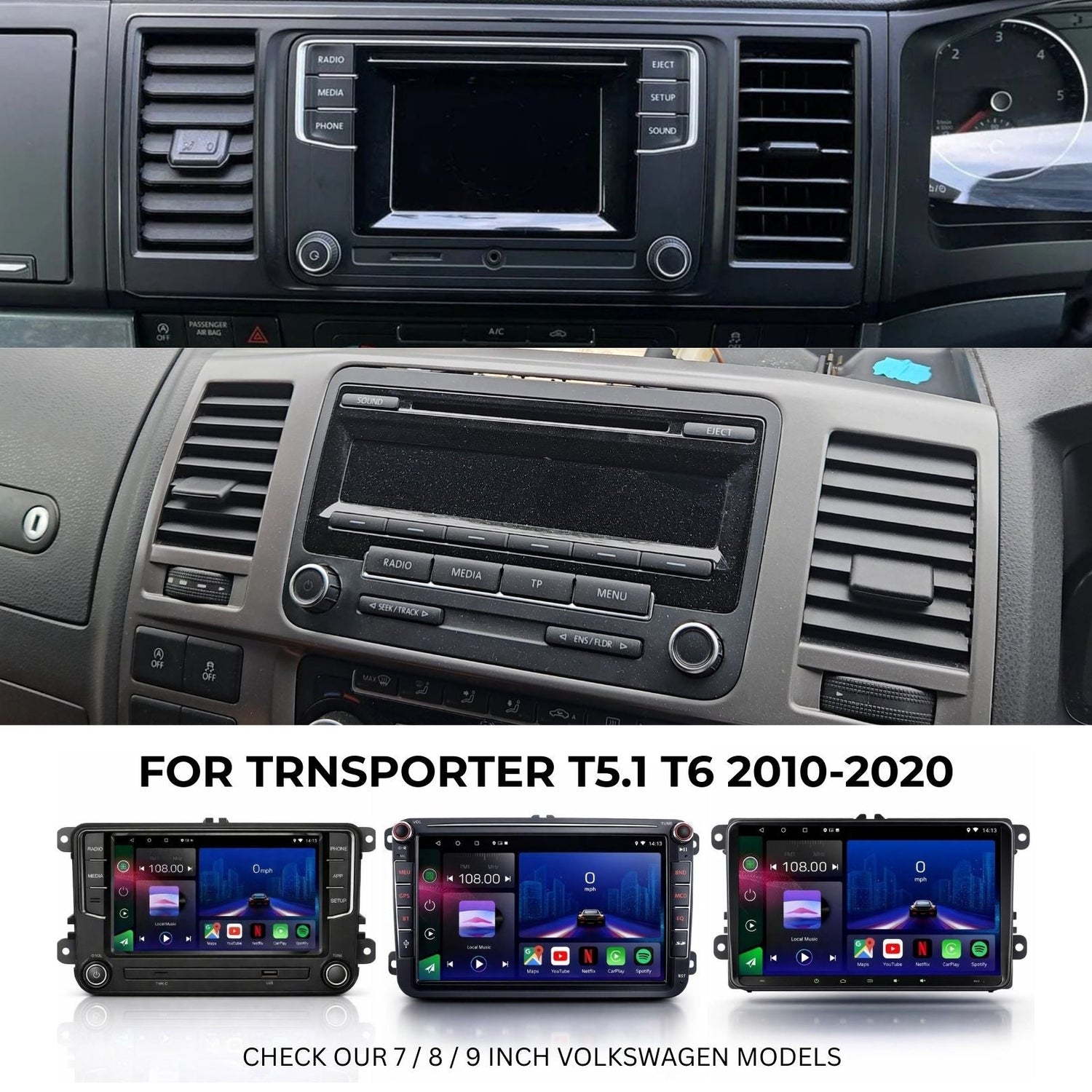 Volkswagen Transporter T5 2003-2010 Android 14 Car Stereo Head Unit with Wireless CarPlay Android Auto